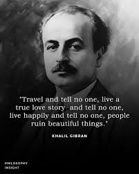 “Travel and tell no one, live a true love story and tell no one, live happily and tell no one, people ruin beautiful things.” ― Kahlil Gibran