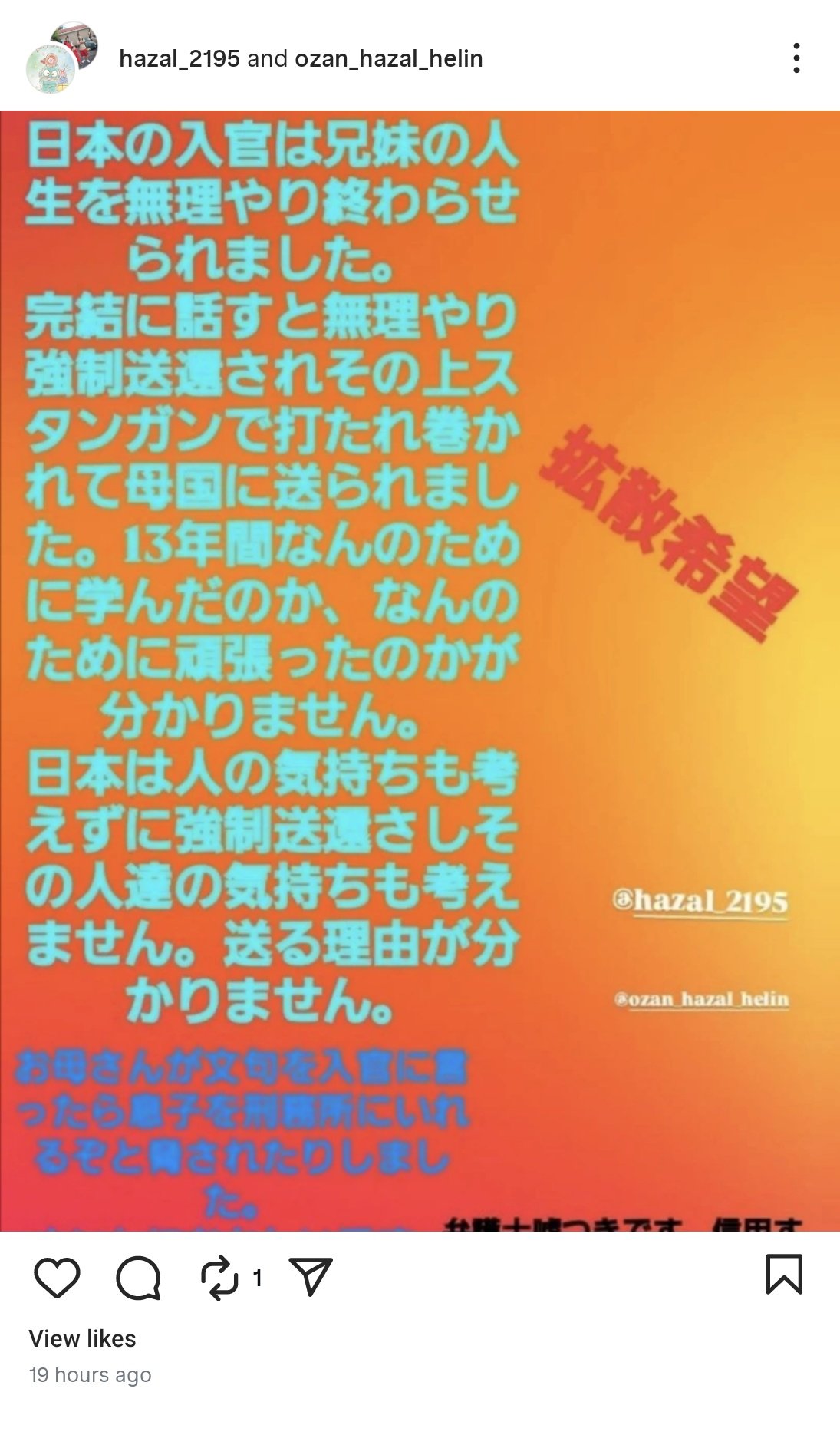 「強制送還され、その上でスタンガンで打たれ巻かれて母国に送られました。」… pic.twitter.com/Kry53HyObL